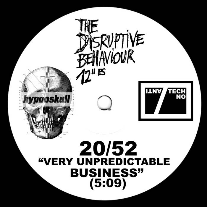 the disruptive behaviour 12”es is a series of thirteen ep’s which will be recorded in 2020 by hypnoskull. each week one brandnew, full track will be released at the anti/techno facebook page + at the hypnoskull soundcloud. you can DOWNLOAD the fresh track FOR FREE during one week. keep an eye on both pages and collect them all. every track will be brandnew, no leftovers used.